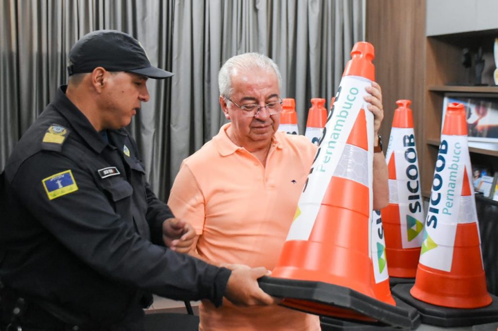 O município de Gravatá recebeu, na tarde da quarta-feira (03), a doação de 40 cones de sinalização do Sicoob, em uma ação que busca contribuir para a organização e segurança no trânsito local. A entrega ocorreu no gabinete do prefeito Joselito Gomes e contou com a presença do vice-prefeito João Paulo de Lemos; do gerente regional Agreste do Sicoob, Vinícius Aragão; da gerente da agência de Gravatá, Edjane Lima; além do secretário de Indústria e Comércio, Zeca da Charque; do secretário de Segurança e Defesa Civil, Gilmar Oliveira; do diretor do DMGTTRANS, José Agostinho; do secretário executivo de Indústria e Comércio, Josias Teles; e do comandante da Guarda Civil Municipal, André Paiva.
