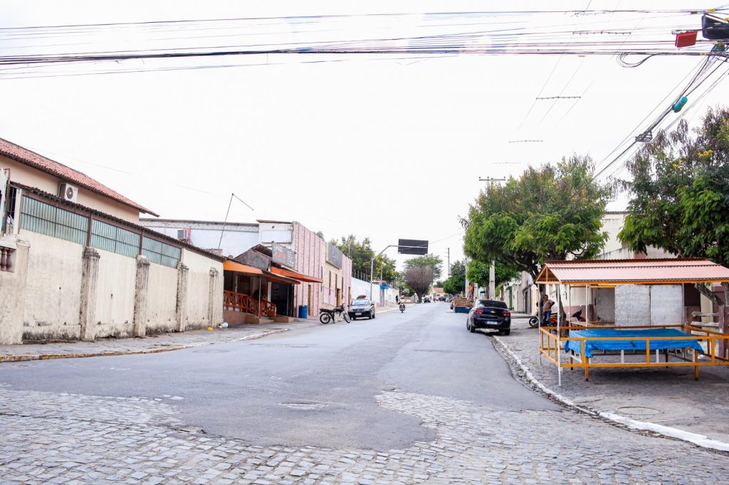 * Bloqueio para circulação de veículos na via do lado esquerdo da Igreja Matriz (semáforo);